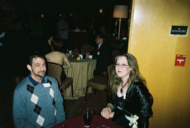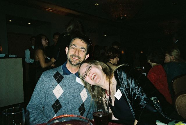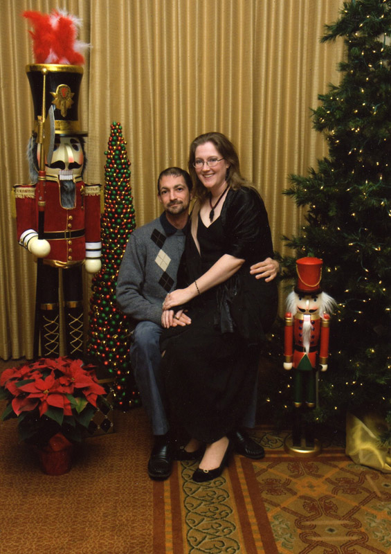 I know the company Christmas party doesn't necessarily sound like, well, a party, but it was. I love where I work and the people I work with. But this year was really special. I mean really. This year I got to take a guest. Yeah, it's true. A guest. OK, so maybe this doesn't sound like much to you, but it meant a lot to me. When I was younger, the company I worked for was too cheap either to have a party, or to let us bring our SO. Later, when I got grown up jobs, I could bring an SO, but that would've been Paul, and he hated stuff like that, which pretty much meant I couldn't go, either. Bennett Homes has been different. I've been able to go to pretty much every one and I love that. But this year, I had Dave, and do you know what? He said he'd come to the Christmas Party with me!!! *spins around like Julie Andrews on a mountain top* OK, well, it was a Christmas party. There was food and a bar and a comedian and a bunch of my coworkers. We spent most of the evening with Alana and her nephew, but we got to hang out with some others, too. The comedian was really good, and I'm so glad I went. The professional photographer took a fabulous portrait of us:
