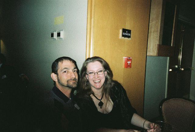 Dave got lots of wolfie stuff -- a whole futon set, a leather mug, some figurines, a clock, a calendar, and a lighted statue -- and he also got some pocket tees and a shirt, and some Kiss after shave (not for the smell -- icka!). I got some lovely jewelry, including a beautiful little heart pendant with diamonds all around, a kitchen witches cook book, and I got the coolest gift, too -- a massage and a facial at a local spa. Mattman got the Earth series DVD he wanted and a worst case scenario desk calendar. Charlotte got some Disney DVD's and a Pooh watch. The puppies got lots of toys, too, and Dave tells me that when he finally got Yeagger home where he could enjoy them without worrying about Star, they were a real hit. Christmas dinner was at the home of some SCA friends of Dave's. REALLY nice people. REALLY good dinner! In spite of not knowing anyone, I felt really at home, which is a little unusual, but they let me help, you see! I spent most of the evening in the kitchen, cooking my little heart out and it pleases me so! They sent us home with some bottles of wine, which was very thoughtful, and I can't help but think how much nicer my life is, anymore, now that I can choose with whom to surround myself. Next --> Dave and Carrie's Excellent Adventures: Part 5